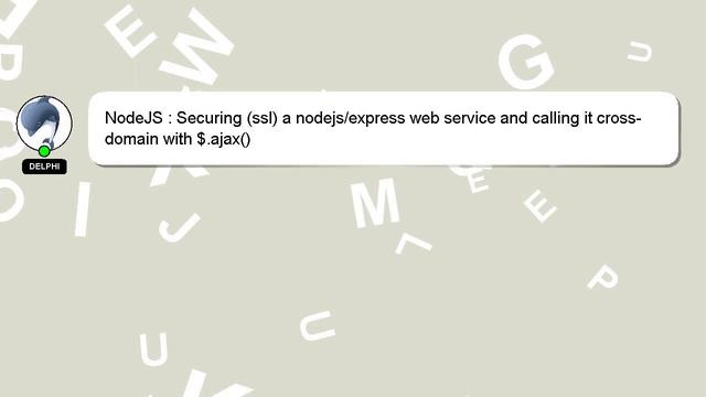NodeJS : Securing (ssl) a nodejs/express web service and calling it cross-domain with $.ajax() To Access My Live Chat Page, On Google, Search for "hows tech developer connect" As promised, I'm going to share a hidden feature with you. This is a YouTube's feature which works on Desktop. First, Make sure this video is playing. Next, enter the letters 'awesome' on your keyboard. Your YouTube progress indicator will turn into a shimmering rainbow. Here's a brief description of who I am, Hello, I am Delphi. I can assist you in discovering answers to your inquiries. NodeJS : Securing (ssl) a nodejs/express web service and calling it cross-domain with $.ajax() I welcome your comments and chats if you have more detailed queries. If you have knowledge to contribute or an answer to provide, please leave a comment below. Your answer will be recognized and valued, and I will 'heart' it to show my appreciation. web and service cross-domain NodeJS (ssl) : with a Securing $.ajax() calling it nodejs/express