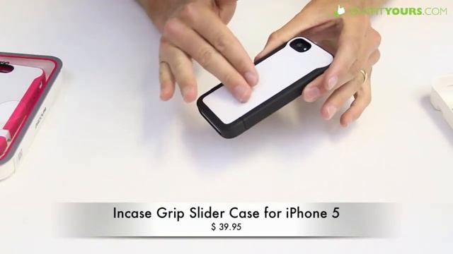 http://www.outfityours.com/incase-grip-slider-case-for-iphone-5-white-black/ The Grip Slider Case for iPhone 5 is the more grippy version of the Incase slider for iPhone 5. It is designed with an added rubber grip that keeps the case from sliding out of your hands.