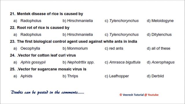 Key answers: 1. B 26 B 2. C 27 B 3. D 28 D 4. B 29 A 5. B 30 C 6. ? 31 A 7. D 32 B 8. A 33 B 9. B 34 D 10. D 35 B 11. A 36 C 12. C 37 B 13. A 38 B 14. B 39 B 15. B 40 18 ATP 16. B 41 A 17. A 42 A 18. A 43 B 19. D 44 A 20. A 45 A 21. B 46 B 22. B 47 D 23. B 48 A 24. Bemisia tabaci 49 C 25. A 50 B