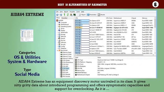 Best 10 Alternatives of Rainmeter 10. ASUS AI Suite 9. Wise System Monitor 8. Hardware Lister 7. HWiNFO32 6. AIDA64 Extreme 5. CPU Thermometer 4. EnhanceMySe7en 3. CPU Temperature Monitor 2. Real Temp 1. Speccy Watch full video to view all of the Best 10 Alternatives of Rainmeter in the video. Best 10 Alternatives of Rainmeter Please do not forget to subscribe our channel to view more videos about Best Apps, Games and Software for your mobile phone and Computers. Click on Bell ICON to get the notification of New Videos.