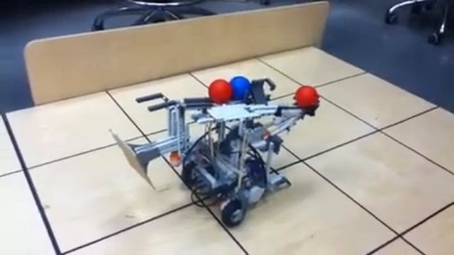 Prototype 2 launcher. 5/5 successful shots. Modification made to motors on wheels to rotate back to initial position.