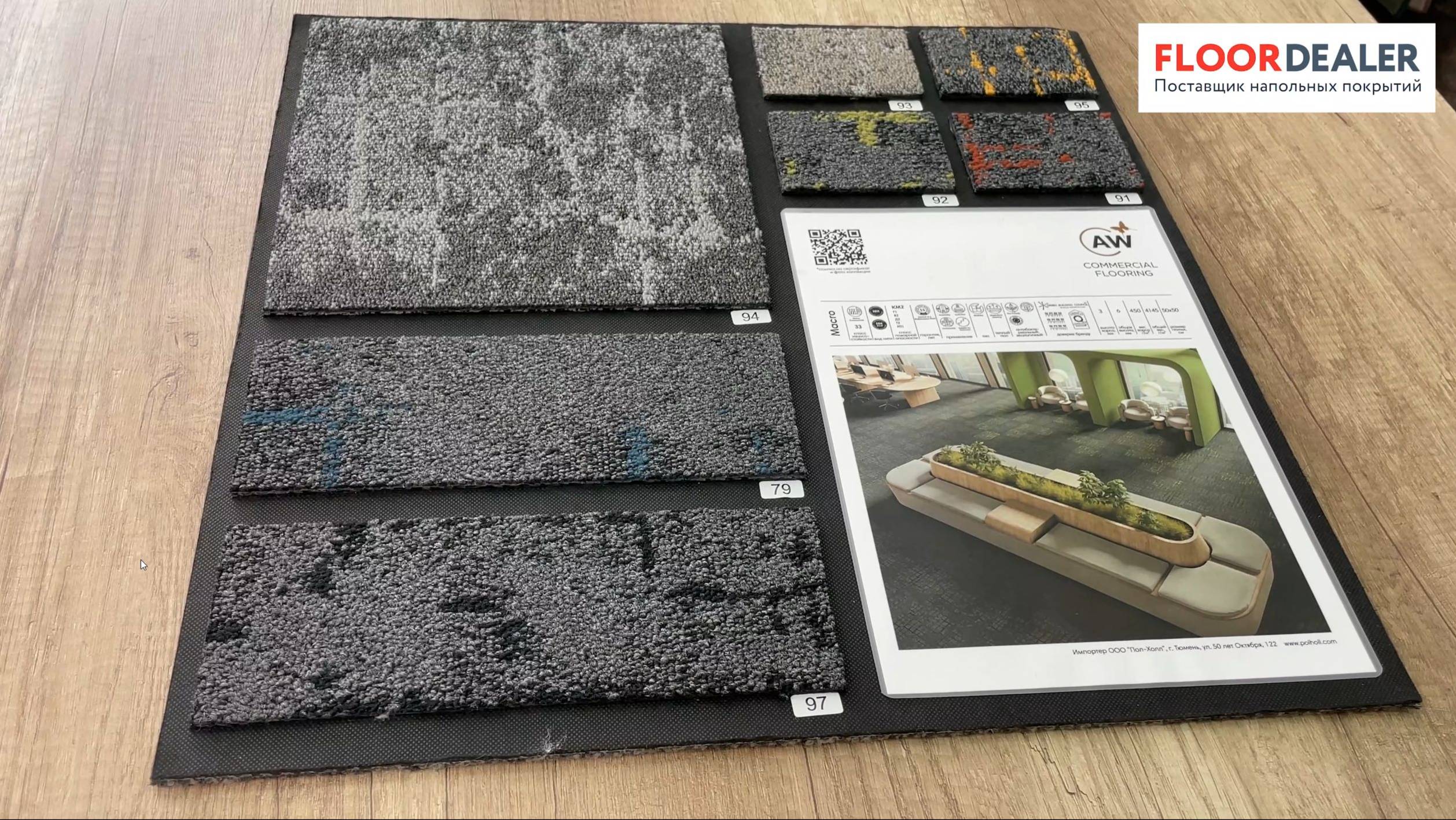 Ковровая плитка «AW Macro» подходит для создания уютного и стильного интерьера как в жилых, так и в коммерческих помещениях. 33 класс износостойкости и пожарный класс КМ2 позволяют применять ее для оформления корпоративных пространств – офисов, конференц-залов, переговорных. Плитка долго сохраняет свой первоначальный вид даже при интенсивной эксплуатации. Ее водонепроницаемая основа из битума, а короткий петлевой ворс – из мягкого нейлона, стойкого к выцветанию, износу и неприхотливого в уходе. Покрытие выпускается модулями 50x50 см, которые удобно укладывать и заменять при необходимости. Коллекция здесь: https://www.floordealer.ru/catalog/kovrovaya-plitka/collections/aw-macro/