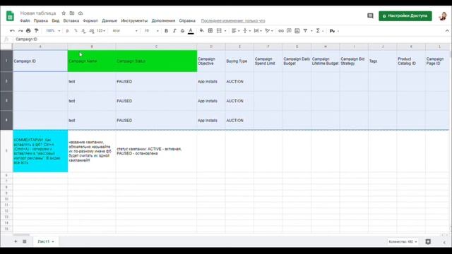 1. Скачиваем таблицу себе на комп. 2. Редактируем таблицу в Exel или переносим в Google Doc. 3. Меняем только колонки салатового цвета. 4. Копируем таблицу. 5. Переходим в ФБ. 6. Импортируем таблицу. 7. Рекламная кампания загружена, редактируем данные. 8. Загружаем крео. 9. Публикуем. P.S. Чтобы лучше научиться работать с данным инструментом, рекомендую экспортировать действующую рекламу. Так же для людей, которые льют на прилки: данные прилки можно взять из экспорта действующей рекламы. ?Таблицу можно скачать в чате https://t.me/Affiliate_blog