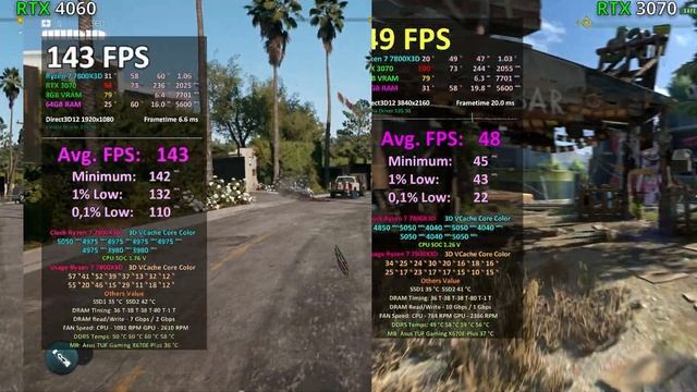 RTX 4060 vs RTX 3070 8GB - TEST 1080p 1440p 4K / R7 7800X3D. I tested the RTX 4060 from MSI against the RTX 3070 from the previous generation from Gigabyte. Is it worth paying extra for RTX 3070? or is nvidia GeForce RTX 4060 8GB suitable. Now you will see the decisive battle of RTX 3070 vs 4060 both with 8GB VRAM. GPU / CPU in TEST - buy tested HW on Amazon: Buy at best price GeForce RTX 4060 - https://geni.us/KWyhjh Buy at best price RTX 3070 8GB - https://geni.us/glk5V Buy at best price AMD Ryzen 7 7800X3D - https://geni.us/4BRQiD ? Timestamps: 00:00 Hogwarts Legacy 00:20 Jedi Survivor 00:40 Atomic Hearts 01:00 Dying Light 2 01:20 Dead Island 2 01:40 Microsoft Flight Simulator 2020 02:00 Doom Eternal 02:20 Last Of Us Remake All DLSS 3, 2 and FSR settings is Quality. With DLSS 3 is Frame Generation ON. ? Support this channel ❤️ - You can use the Super Thanks - You can also use the Affiliate Links - not cost you anything extra - You can use YouTube Channel Memberships - https://www.youtube.com/channel/UCBhTsvLUlpq-uHoWFu4Ub4g/join ? Other interesting videos to watch: Proof of my GPUs Collection: https://youtu.be/2PM6C-IQLMc NVIDIA GeForce RTX 4060 Benchmarks / Buy https://geni.us/KWyhjh https://youtube.com/playlist?list=PLEqGSdcLmiOjCvRrHnUxDyu_pGZBJ-Dqm NVIDIA GeForce RTX 3070 Benchmarks / Buy https://geni.us/glk5V https://youtube.com/playlist?list=PLEqGSdcLmiOgDySmlrSWuvjHV_fwf4FjU ------------------------------------------------------------------------ ? PC Main Benchmark SETUP: CPU: AMD Ryzen 7 7800X3D / PBO ON / Curv.Opti. -30 / Scalar x5 - https://geni.us/4BRQiD Thermal Paste - https://geni.us/S3FkCVu CPU Air Cooler - https://geni.us/4jeVZI RAM: 64GB - 4x 16GB 5600 MHz CL36 - https://geni.us/q4eYgp Mainboard - https://geni.us/44ooY7 Power Supply - https://geni.us/EjdIUZZ SSD for game: 2x2TB - https://geni.us/o9Qm SSD for system 2TB - https://geni.us/ztxlm8x OS: Windows 10 Home 64 bit My gaming Monitor - https://geni.us/A7K8LN My OLED TV - https://geni.us/YMJEAlY My mouse - https://geni.us/ZJuQC0U My Headphones - https://geni.us/esi5F #rtx4060 #rtx4070 #pcgaming Disclosure: As an Amazon Associates partner I may receive a small amount back from qualified purchases through affilate links. This way you support my channel, but the price for you remains the same. No purchase through these links costs you anything extra.