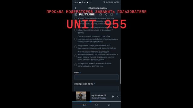 обращение к модерации рутуб