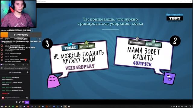 Поддержка стримера: Рублем - https://www.donationalerts.com/r/veinardplay Скином - https://steamcommunity.com/tradeoffer/new/?partner=118636332&token=GKcW9s1s BOOSTY: https://boosty.to/veinard/donate ======================================================= The Jackbox Party Pack 1,2,3,4,5,6,7,8,9,10 ======================================================= Подпишись друг Осталось совсем не много до 1000 человек!! СТРИМ КАЖДЫЙ ДЕНЬ! Discord - https://discord.gg/WkxZtAgz Twich - https://www.twitch.tv/veinardplay Vkontakte - https://vk.com/veinardplay Telegram - https://t.me/veinardplay - тут розыгрыш TikTok - https://www.tiktok.com/@veinard_play Приятного просмотра друзья! Нас становится с каждым днём всё больше и больше) Всех Обнял! Рестримчик тут - https://www.twitch.tv/veinardplay #thejackboxpartypack3 #TheJackboxPartyсподписчиками #джекбокс #денчик #veinard #Вейнард #Джекбокс4 #гартикфон #глухойтелефон