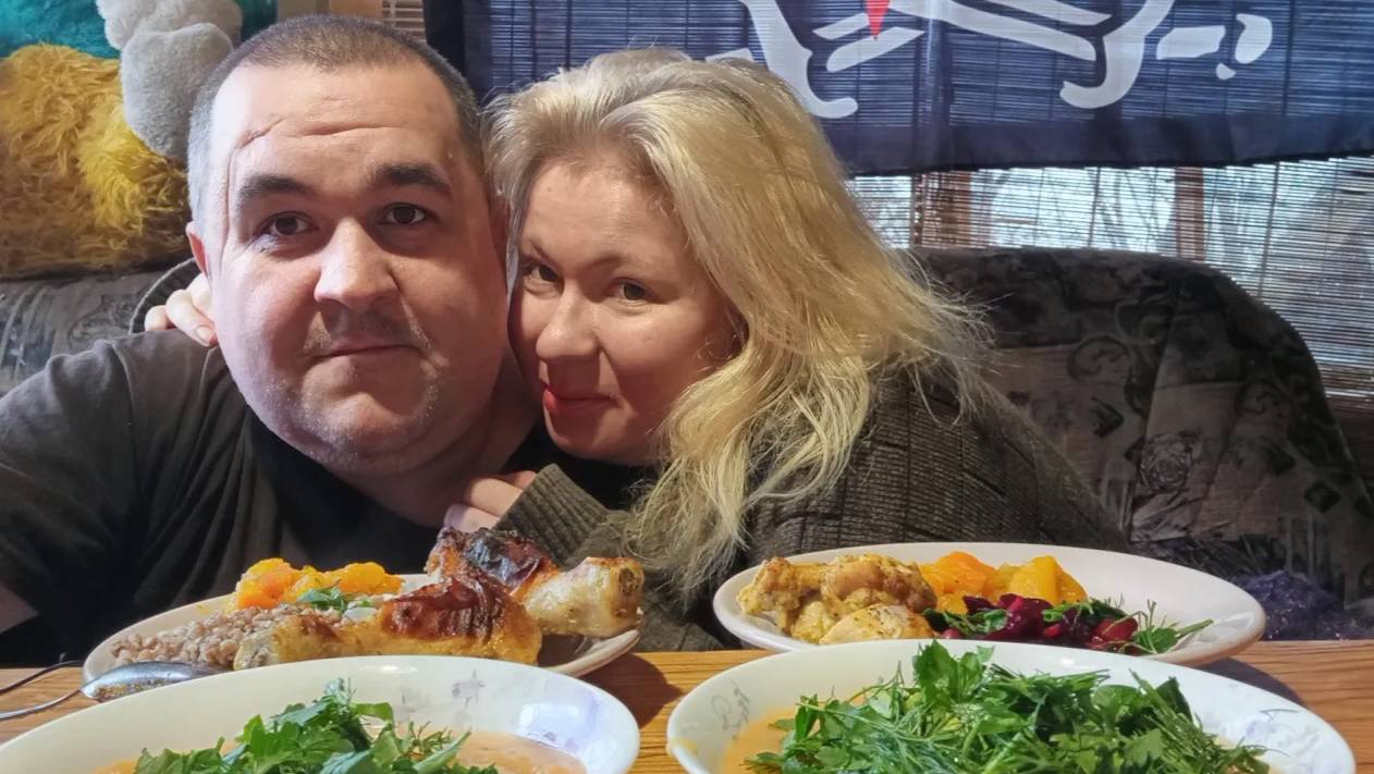 комплексный мукбанг - курочка замаринованная в горчично-медовом маринаде и запеченная в духовке, гороховый суп-пюре, тыква тушеная с овощами