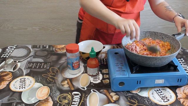 ИНГРЕДИЕНТЫ: - Фарш 1 уп (450гр) - Помидоры 1 шт - Лук репа 1 шт - Морковь 1 шт - Шрирача по желанию - Соль, Перец по вкусу - Макароны 1 уп