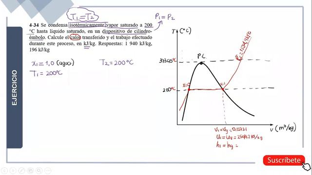 🔥 SUSCRIBETE | Este canal será la mejor opción para iniciarte en la Termodinámica, te permitirá conocer ejercicios resueltos PASOA a PASO para que puedas hacer trabajos y estudiar para tus evaluaciones. 😀📢 Si se te dificulta comenzar tus ejercicios de TERMO y MECANICA DE FLUIDOS y necesitas un profesor. Escríbeme al WhatsApp 👇👇 https://bit.ly/3Dia6UO Facebook: https://www.facebook.com/neylrichard/ Instagram: https://www.instagram.com/nrichardtj/ 📚✏ Ejercicios que realicé en este vídeo 4-34 Se condensa isotérmicamente vapor saturado a 200 °C hasta líquido saturado, en un dispositivo de cilindro-émbolo. Calcule el calor transferido y el trabajo efectuado durante este proceso, en kJ/kg. Respuestas: 1 940 kJ/kg, 196 kJ/kg