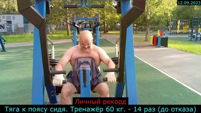 12.09.2023 - Тяга к поясу сидя. Тренажёр 60 кг. - 14 раз (до отказа)