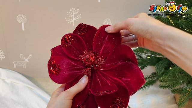 333044 Цветок декоративный Магнолия с бархатистым покрытием украшенным пайетками красный 50см