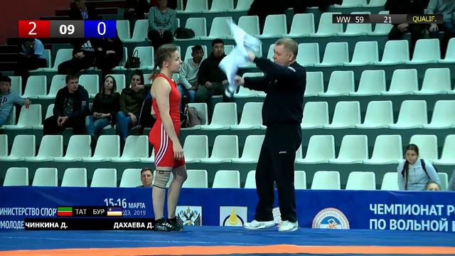 ЧР по вольной борьбе среди женщин. Чинкина Д.(ТАТ) и Дахаева Д.(БУР)-квалификация, 59кг