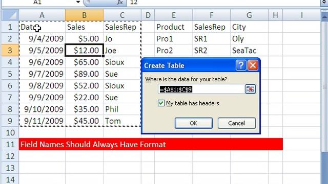 Download Files: https://people.highline.edu/mgirvin/YouTubeExcelIsFun/EMT377-380.xls If field names have formatting, Excel understands that they are field names and should not be used as data. See the Excel List / Table feature shortcut: Ctrl + T.