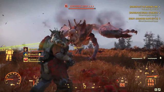 Bloodied 25% fast fire 15% faster reload Prime Reciver 50 cal Ultracite Power Armor with calibrate shocks, bracer arms, HUD helm and Emergency protocol torso.