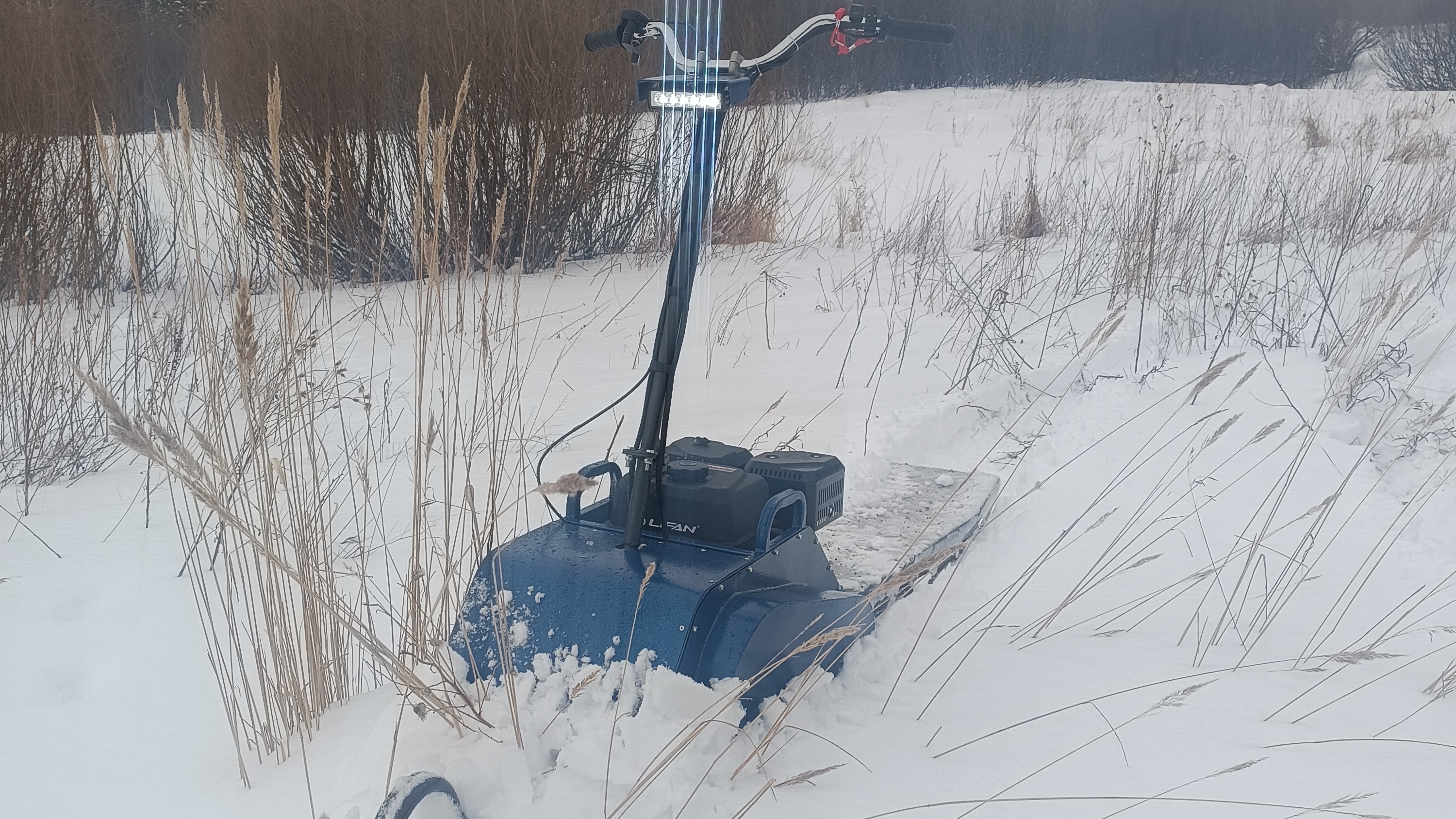 покатушки на самодельном снегокате