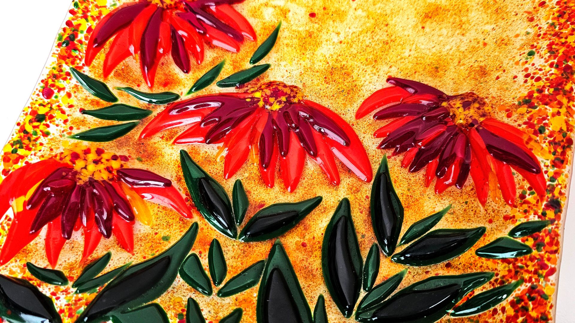 тарелочка яркая астры ручная работа фьюзинг стекла