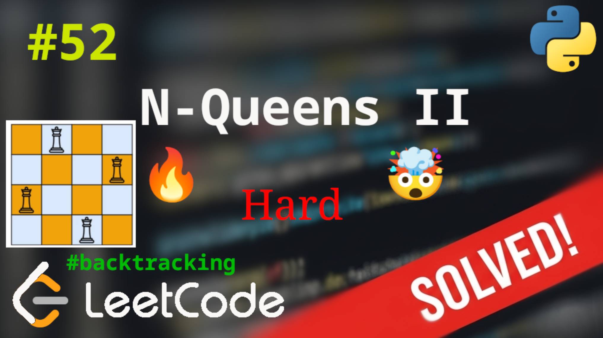 Подробное решение задачи N-Queens II на языке программирования Python. Очень интересная hard задача на тему Backtracking. Telegram: https://t.me/LeetCult #leetcode #algorithms #python #leetcodepython #programming #education #backtracking