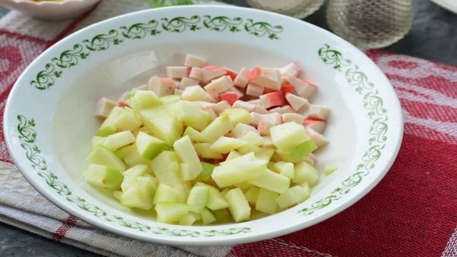 Крабовый салат с яблоками и кукурузой