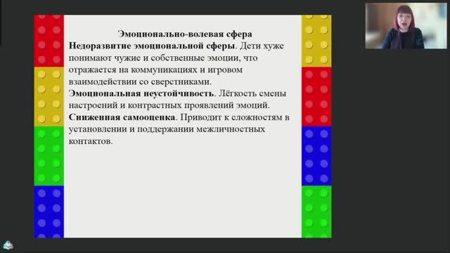 Венгер Екатерина Александровна: педагог-психолог, преподаватель психологии, стаж работы в психологической деятельности - 17 лет, активный участник международных, всероссийских, региональных научно-практических конференций, семинаров, акций, круглых столов. Конструктор LEGO — это не только увлекательный игровой материал, но и мощный инструмент коррекционно-развивающей работы с детьми с ограниченными возможностями здоровья (ОВЗ). С использованием конструктора LEGO можно развивать когнитивные функции, воображение, цветовосприятие и коммуникативные навыки у детей с ОВЗ. На вебинаре разберем проверенные методики для организации занятий, которые помогут повысить мотивацию ребёнка и улучшить результаты коррекционной работы. Поговорим о психологических и педагогических особенностях применения LEGO в работе с детьми с ОВЗ Развитие познавательных функций и творческого мышления через конструирование Формирование цветового восприятия и моторных навыков Развитие коммуникативных навыков и социализация через игровые практики с LEGO. Наш портал «Педагоги России» — бесплатные вебинары: http://veb.pedrus.ru/ Приобрести сертификат можно тут: https://veb.pedrus.ru/zayavka/?id=1822