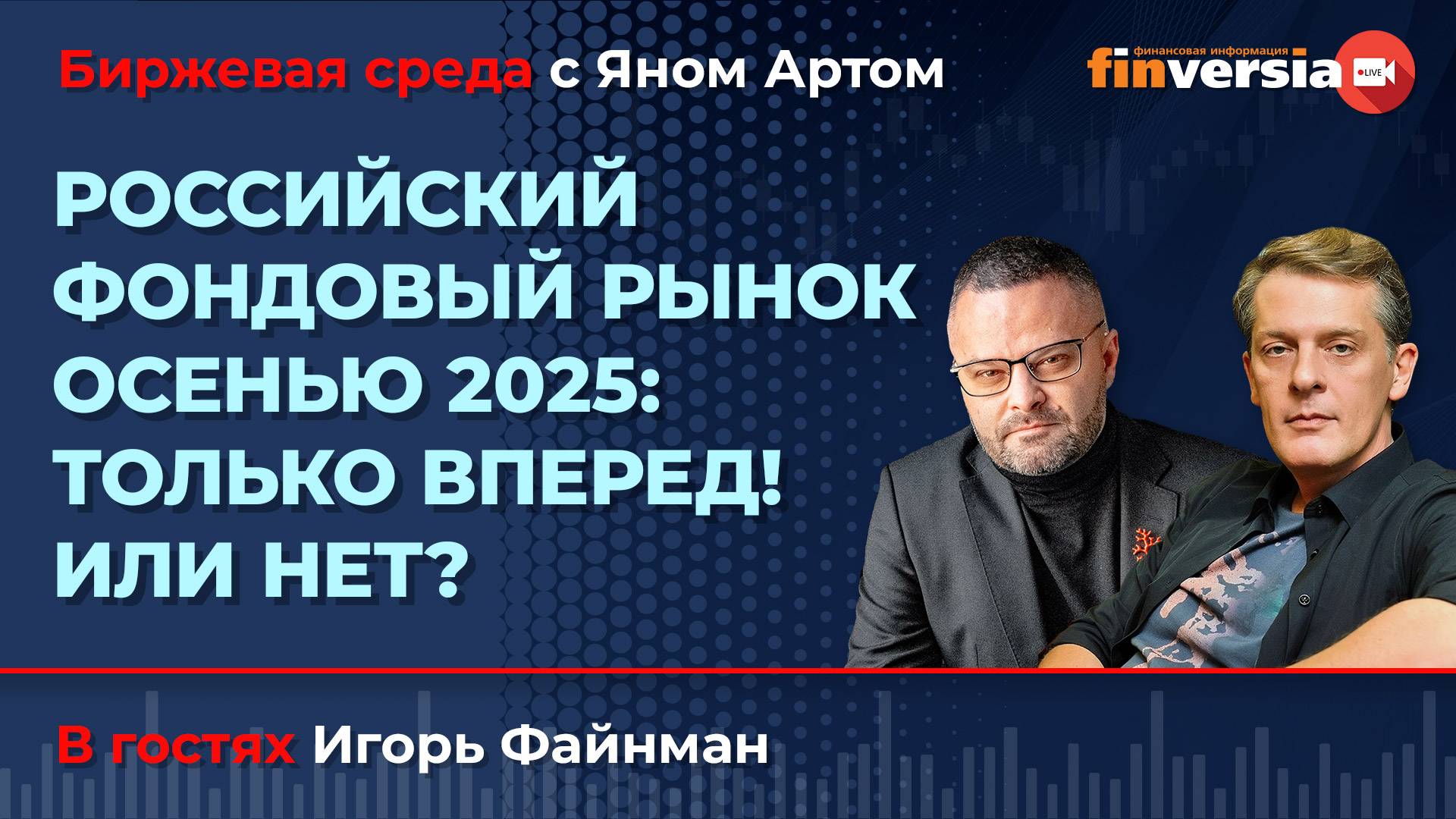 Российские облигации осенью 2025 года: каковы перспективы, что покупать? Как снижение ставки Центробанка может сказаться на рынке. Война и мир: фондовый рынок в ожидании перемен. На какие российские акции сейчас можно обратить внимание и делать ставку. Курс рубля: “где же все-таки у него кнопка”? В гостях у Яна Арта – независимый инвестиционный советник Игорь Файнман. Прямой эфир Finversia: 10 сентября 2025 в 19.00 по мск. ➛Telegram-канал Файнманомика: https://t.me/FI_sovetnik ИНФОРМАЦИЯ ДЛЯ НАШИХ ЗРИТЕЛЕЙ: 💰Поддержать канал: https://donate.stream/finversia или https://boosty.to/finversia/donate | СБП Сбер +7 917 511 76 46 Карта Сбер 2202 2063 0032 3834 👶👧Проект Арина – проект помощи детям России: https://www.finversia.ru/arena/project-arina 🔔Предстоящие прямые эфиры Finversia: https://www.finversia.ru/live-calendar 📌ИНВЕСТКЛУБ Finversia: https://boosty.to/finversia 📌СЕРВИСЫ, КНИГИ, ОБУЧЕНИЕ: ➛Финансовые консультации Finversia: https://www.finversia.ru/arena/consultations ➛Ежедневная информация финансового рынка: https://www.finversia.ru/ ➛Книги и футболки можно приобрести в интернет-магазине: https://finarty.ru/shop 📌ПОДПИСАТЬСЯ НА Finversia: ➛YouTube: https://goo.gl/psct2M ➛Дзен: https://clck.ru/PrTSC ➛ВКонтакте: https://vk.com/finversia ➛Rutube: https://rutube.ru/u/finversia/ ➛Telegram Finversia Экономика с Яном Артом: https://t.me/finversiaru ➛Telegram Finversia Инвестиции: https://t.me/finversia_investclub #ЯнАрт #ИгорьФайнман #инвестиции #фондовыйрынок #Биржеваясреда