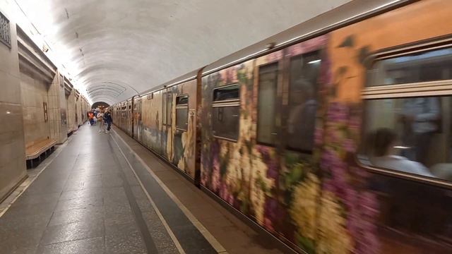 Метропоезд 81-740/741 "Русич" "Акварель" прибывает на станцию "Семёновская"