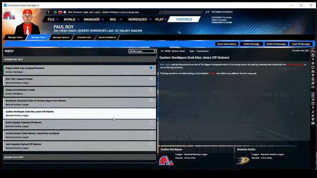 FHM Community Manager Adam and FHM Producer Jeff continue to work on their Quebec Nordiques Franchise! Jeff and Adam start the 2021/2022 season by starting with some tough decisions! We've had some excellent development - so who stays and who goes down to the minors? We also make a few waiver claims to build up some available prospects and kick the season off in...well...some sort of style. Franchise Hockey Manager 5 - Own The Ice. Etch Your Name. - FHM5 released October 5th, 2018! Get your copy today: Esellerate: https://goo.gl/7aZLKs Steam: https://store.steampowered.com/app/880380/Franchise_Hockey_Manager_5/ Stream -- Watch live Wednesdays at 10pm Eastern at http://www.twitch.tv/ootpdevelopments Twitter - @FranchiseHockey Facebook - Franchise Hockey Manager Forum - http://www.ootpdevelopments.com/board/ Blog - http://www.ootpdevelopments.com/ Music: http://www.bensound.com/royalty-free-music Archived from our Twitch Channel - May 1st, 2019.