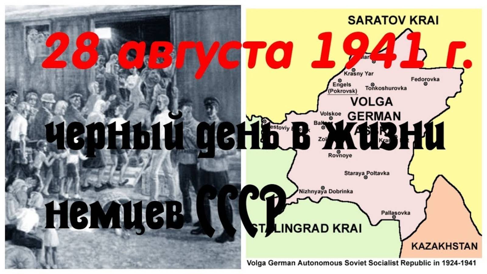 Указ Президиума Верховного Совета СССР «О переселении немцев, проживающих в районах Поволжья» от 28 августа 1941 года содержал обвинения населения советской Автономии немцев Поволжья в пособничестве «многочисленным шпионам и диверсантам», якобы засланным гитлеровцами в этот регион СССР. Мои контакты: Ютуб- https://www.youtube.com/channel/UC60YqkKksZaT2x-uLcUCCCg ВКонтакте- https://vk.com/oblinova1965 ОК- https://ok.ru/group/59523134783660/video/c4532140 Телеграм- https://web.telegram.org/a/#-1001443284231 BOOJTSY: https://boosty.to/obovsemponenozhku Рутуб: https://rutube.ru/channel/23344395/