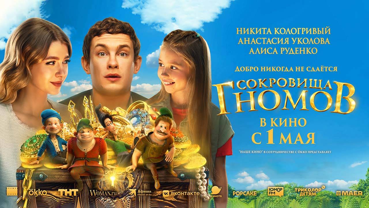 Отечественная приключенческая комедия для всей семьи «Сокровища гномов (2025)» заработала за стартовый уик-энд проката около 82 млн рублей. Режиссер: Александр Бабаев. В ролях: Никита Кологривый, Анастасия Уколова, Алиса Руденко, Владимир Сычев, Михаил Орлов, Андрей Свиридов и др.