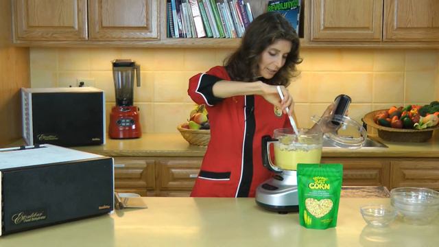 Learn how to make this spectacular raw food recipe with Cherie Soria, founder and director of the renowned raw vegan culinary school, Living Light Culinary Institute. Cherie is the author of Raw Food For Dummies (coauthor Dan Ladermann), The Raw Food Revolution Diet, (co-authors Brenda Davis, RD and Vesanto Melina, MS, RD.), and the classic raw food book Angel Foods: Healthy Recipes for Heavenly Bodies.Cherie has taught gourmet raw vegan cuisine since 1992, and vegetarian culinary arts for more than 40 years. Jalapeño Onion Corn Bread Yields 16 pieces (Serves 8) 4 cups fresh or frozen corn kernels 2 cups freeze dried corn (Just Corn), ground using a spice grinder or blender 2 cups white almond flour ½ cup coconut butter, warm to soften ½ cup warm water 1 tablespoon Himalayan crystal salt ½ teaspoon cayenne pepper ¼ cup onion, minced, rinsed, and towel blotted 1-2 jalapeño peppers, seeded and minced 1. Put fresh and ground freeze dried corn, almonds flour, soft coconut butter, warm water, and salt in a food processer and process until smooth. 2. Add the minced onions and jalapeño to the food processer and pulse briefly, just to mix. Do not puree. 3. Spread the batter onto a 16--x 16--inch dehydrator tray covered with a nonstick sheet. Spread the batter about ½-inch thick. Using a dull knife or spatula, score the batter 4"x 4" to form 16 squares. 4. Dehydrate at 125 degrees for 8 hours. Flip the bread and remove nonstick sheet. Reduce the temperature to 105 degrees and dehydrate for another 8 hours or until bread is pliable but easy to handle without falling apart. Serve warm with coconut butter or other spread of choice. 5. Allow to cool thoroughly before storing in a sealed container in the refrigerator for up to 1 week. http://www.RawFoodChef.com http://www.facebook.com/LivingLightCulinaryInstitute