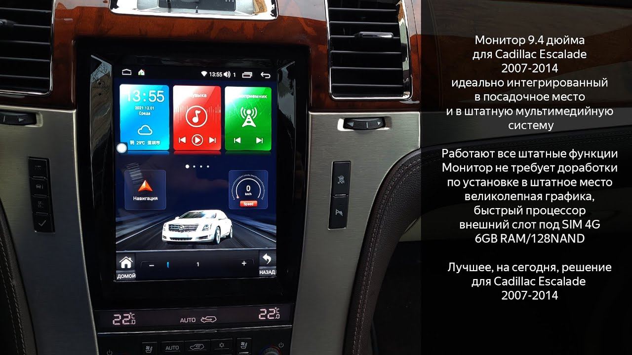 Cadillac Escalade 2007-2014 монитор формата "Tesla" в идеальном исполнении по посадочным местам