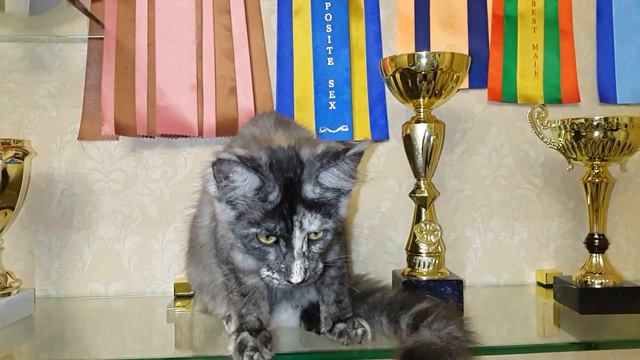 Кошка дымчатая черепаха мейн кун