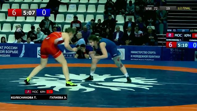 ЧР по вольной борьбе среди женщин. Колесникова Т. (МОС) - Гулиева Э. (КРН) - 1/2 Финала, 72кг