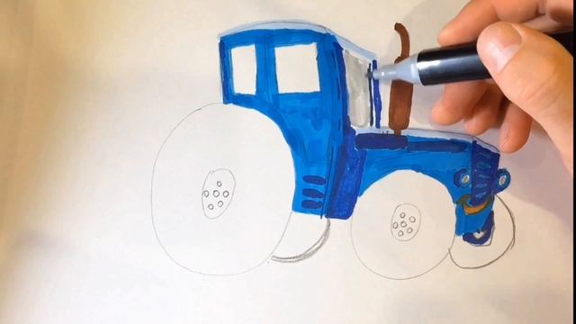 как рисовать маркерами из мультика синий трактор