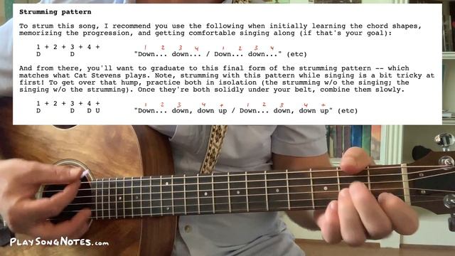 Get my print-friendly sheet music for this song: https://www.musicnotes.com/l/DgbMX BONUS for Patreon supporters: save 50% when buying the sheet music! Get the discount code here @ https://songnotes.net/discount Support me on Patreon and get access to my entire library of (non-song) instructional PDFs, plus get a monthly discount code (50% off) when buying any of my song sheet music. Learn more @ https://songnotes.net/join View my additional notes for this lesson: https://songnotes.net/lessons/333/ *** Hey friends! Here's a brand new guitar lesson showing you how to play Father and Son, the 1970 from Cat Stevens' 4th album (Tea for the Tillerman). In this lesson I'll explain the chords, talk about the progressions, demonstrate two different strumming options, and then show you a few different ways to play the intro riff (tabs included). Whether you want to keep it simple play it exactly like Cat Stevens -- this lesson has you covered. Thanks for everyone who requested this song, there's been quite a lot of you who have asked for this one recently! Video timestamps: - 0:00 Lesson overview - 2:27 Chord shapes - 5:10 Progression & basic strum - 11:25 How Cat Stevens strums it - 14:56 Intro riff: chords & strumming - 17:47 Intro riff: ending lick (2 options) - 22:54 Full playthrough If you want to view more of my lessons, visit songnotes.net which is my personal collection of lessons, tabs, and notes -- all created with care by me (David Potsiadlo). 🎸 Browse all my lessons https://songnotes.net 📝 View all my PDFs & song sheets https://songnotes.net/printables 🎟️ Unlock all my courses & premium content https://songnotes.net/join