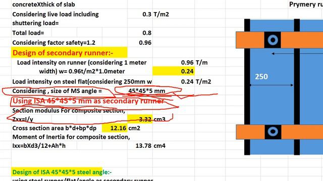 formwork design for slab using MS shuttering, slab design with Mild steel ISA angle formwork design