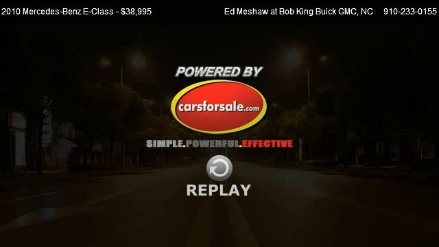 Ed Meshaw at Bob King Buick GMC 5115 NEW CENTRE DR in Wilmington, NC 28403 Come test dirve this 2010 Mercedes-Benz E-Class E350 for sale in Wilmington, NC. http://northcarolinabuickgmc.com Avant Garde Package (Sport), Lighting Package, Premium 2 Package (Bi-Xenon Active Light System, COMAND w/Navigation & Voice Control, Cornering Lights, Electronic Trunk Closer, harman/kardon Sound System w/Dolby 5.1, Headlamp Washing System, Heated Front Seats, iPod/MP3 Media Interface Cable, KEYLESS-GO, Power Rear Window Sunshade, Rear-View Camera, and SIRIUS Satellite Radio), Sport Package (Sport Body Styling and Sport Suspension), Wheel Package (Sport Steering Wheel), AWD, Alloy wheels, Burl Walnut Wood Trim, and Panorama Sunroof. Mercedes-Benz has outdone itself with this gorgeous-looking 2010 Mercedes-Benz E-Class. It just doesn't get any better at this price! Designated by Consumer Guide as a Recommended Premium Midsize Car in 2010. If necessity is the mother of invention, obviously the designers were late a lot when they drew up this car. Looks like they won't be tardy anymore...this thing is QUICK! Mercedes-Benz Certified Pre-Owned means you get an additional 12 months Limited Warranty on top of the existing factory warranty, or up to 100,000 miles of coverage. We also do up to a 162-point rigorous inspection/reconditioning, 24/7 roadside assistance, trip-interruption services, and a complete CARFAX vehicle history report. COMAND w/Navigation & Voice Control,Premium 2 Package,Avant Garde Package (Sport),Lighting Package,Sport Package,Wheel Package,8 Speakers,AM/FM radio,Audio memory,CD player,DVD-Audio,harman/kardon Sound System w/Dolby 5.1,MP3 decoder,Radio data system,Radio: COMAND AM/FM/In-Dash 6-Disc DVD/CD Changer,SIRIUS Satellite Radio,Weather band radio,Air Conditioning,Automatic temperature control,Front dual zone A/C,HVAC memory,Rear window defroster,Electronic Trunk Closer,Head restraints memory,iPod/MP3 Media Interface Cable,Memory seat,Power driver seat,Power Rear Window Sunshade,Power steering,Power windows,Remote keyless entry,Steering wheel memory,Steering wheel mounted audio controls,Entertainment system,Four wheel independent suspension,Speed-sensing steering,Sport Suspension,Traction control,4-Wheel Disc Brakes,ABS brakes,Anti-whiplash front head restraints,Dual front impact airbags,Dual front side impact airbags,Emergency communication system,Front anti-roll bar,KEYLESS-GO,Knee airbag,Low tire pressure warning,Occupant sensing airbag,Overhead airbag,Power adjustable front head restraints,Power adjustable rear head restraints,Rear anti-roll bar,Panorama Sunroof,Brake assist,Electronic Stability Control,Rear-View Camera,Bi-Xenon Active Light System,Cornering Lights,Delay-off headlights,Front fog lights,Headlamp Washing System,Rear fog lights,Panic alarm,Security system,Speed control,Auto-dimming door mirrors,Bodyside moldings,Bumpers: body-color,Heated door mirrors,Power door mirrors,Sport Body Styling,Turn signal indicator mirrors,14-Way Power Adjustable Front Seats,Auto tilt-away steering wheel,Auto-dimming Rear-View mirror,Burl Walnut Wood Trim,Driver door bin,Driver vanity mirror,Front reading lights,Garage door transmitter,Genuine wood console insert,Genuine wood dashboard insert,Genuine wood door panel insert,Illuminated entry,Leather Shift Knob,Leather steering wheel,Outside temperature display,Overhead console,Passenger vanity mirror,Rear reading lights,Rear seat center armrest,Sport Steering Wheel,Tachometer,Telescoping steering wheel,Tilt steering wheel,Trip computer,Front Bucket Seats,Front Center Armrest,Heated Front Seats,MB Tex Upholstery,Power passenger seat,Passenger door bin,Alloy wheels,Rain sensing wipers,Variably intermittent wipers Provided by Carsforsale.com http://video.carsforsale.com/vehiclevideo.aspx?vid=160026117