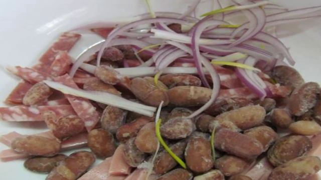 Простой салат из фасоли с колбасой