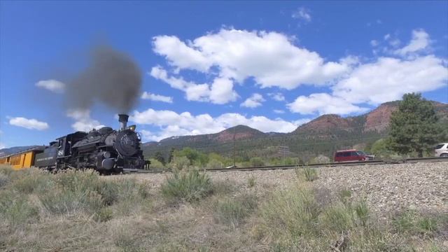 Источник (retrieved from) https://www.youtube.com/watch?v=cTYb9Z9-N1I Замечательный ролик всей поездки на этом паровозе можно посмотреть на этом видео https://www.youtube.com/watch?v=5bygu9HFiS4. На всей территории Соединенных Штатов есть много любимых туристами железных дорог, наполненных удивительными пейзажами и очень насыщенными поездками. Возможно, одной из самых популярных и живописных на юго-западе и, по сути, в Соединенных Штатах будет узкоколейная железная дорога Дуранго и Сильвертон. Компания D&S, базирующаяся в Дуранго, штат Колорадо, непрерывно работает с 1981 года, перевозя пассажиров в Сильвертон, штат Колорадо, через красивые горы и леса Сан-Хуана. Автор не разрешает повторное использование, по этому настоятельно рекомендую зайти и посмотреть это прекрасное путешествие. Приятного просмотра) A wonderful video of the entire trip on this locomotive can be viewed on this video https://www.youtube.com/watch?v=5bygu9HFiS4. The author does not allow reuse, so I strongly recommend that you go and see this wonderful trip. Enjoy watching)