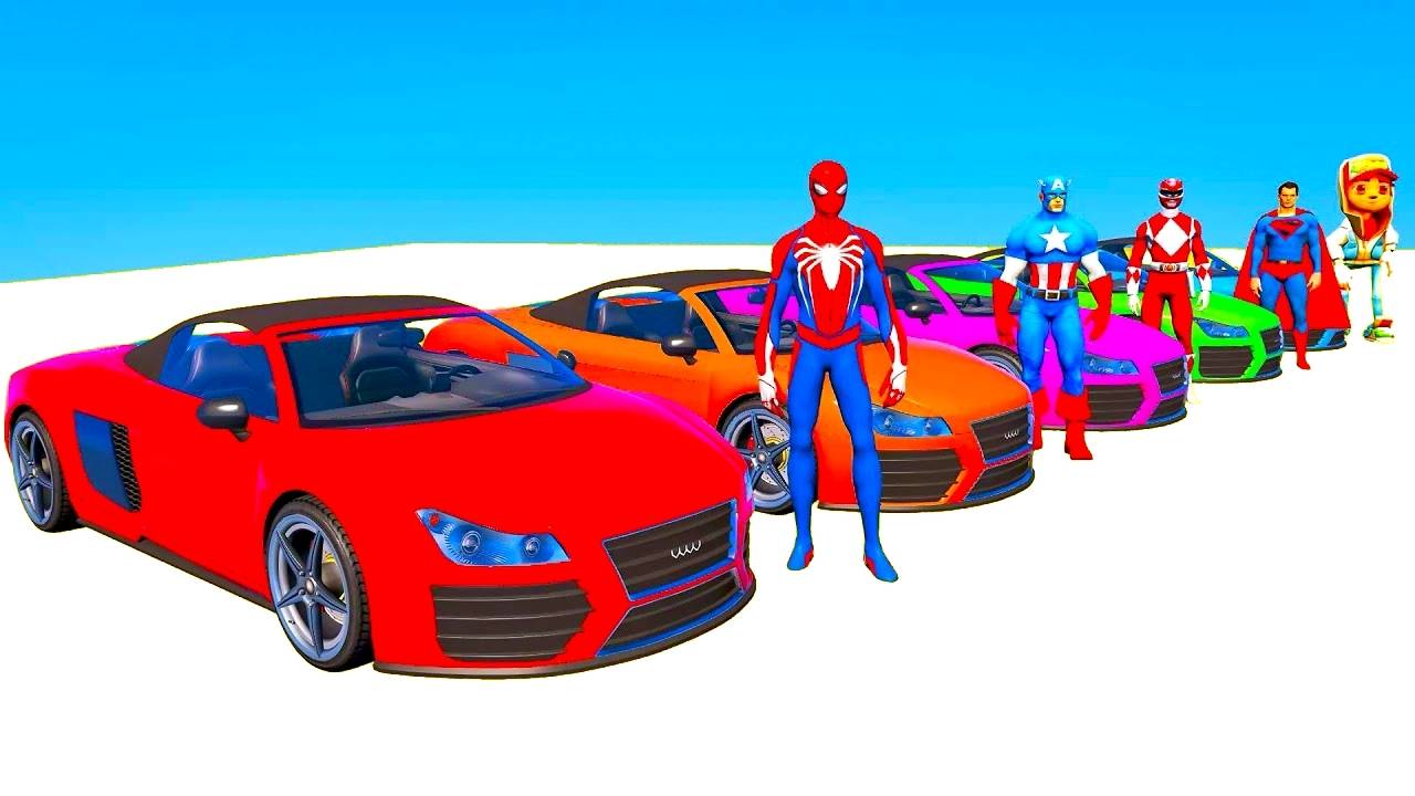 Веселые Цветные Машинки с Человеком-пауком для детей. Мультики про машинки. Мультфильм для малышей.