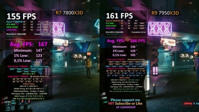 Ultimate TEST AMD Ryzen R7 7800X3D vs R9 7950X3D in 10 GAMES - BEST GAMING CPU? / 1080p Benchmark RTX 4090. Comparison Budget vs Expensive HW, Asus TUF vs Asus Strix motherboard. DDR5 Kingston vs G.Skill - PC build review. Buy/Check prices relevant products from Amazon below: AMD Ryzen 7 7800X3D - https://geni.us/4BRQiD AMD Ryzen 7950X3D - https://geni.us/Brzl ? Timestamps: 00:00 The Witcher 3 Next-Gen 01:02 God of War 02:10 RDR2 03:09 Shadow of the Tombraider 03:58 Cyberpunk 2077 04:55 Call of Duty: Modern Warfare 2 05:47 Forza Horizon 5 07:09 Horizon Zero Dawn 08:26 Dying Light 2 ? Other interesting videos to watch: Proof of my GPUs Collection: https://youtu.be/2PM6C-IQLMc NVIDIA GeForce RTX 4070 Benchmarks : https://youtube.com/playlist?list=PLEqGSdcLmiOgyP-Fqqo7b2LYvJHDiWhD3 NVIDIA GeForce RTX 4070 Ti Benchmarks : https://youtube.com/playlist?list=PLEqGSdcLmiOgcRXwsjXGCbHQC6-l1o4H4 NVIDIA GeForce RTX 4080 Benchmarks: https://www.youtube.com/playlist?list=PLEqGSdcLmiOii4CzYD4zeYsAZ6Vk_70nQ NVIDIA GeForce RTX 4090 Benchmarks: https://www.youtube.com/playlist?list=PLEqGSdcLmiOjQGEAX1vj5PLbGHpEF4i4j AMD RX 7900 XTX Benchmarks: https://youtube.com/playlist?list=PLEqGSdcLmiOg__2UOu_bnokektSGMsil0 ALL BENCHMARKS: https://www.youtube.com/playlist?list=PLEqGSdcLmiOji4SkPgULc2Rl9VaYwnlcU ------------------------------------------------------------------------ ? PC Benchmark SETUP 1: CPU: AMD Ryzen 9 7950X3D / PBO Enable / paste Liquid Metal RAM: 64GB - 4x G.Skill Trident Z5 Neo 16GB DDR5 6000MHz CL30-38-38-96-T1 MB: Asus ROG Strix X670E-E Gaming Zdroj: GIGABYTE UD1000GM PG5 ATX 3.0 1000W SSD: WD Blue SN570 1TB + Crucial P3 Plus 4TB OS: Windows 10 Home 64 bit ? PC Benchmark SETUP 2: CPU: AMD Ryzen 7 7800X3D / PBO ON / Curv.Opti. -30 / Scalar x5 / paste Corsair XTM70 RAM: 64GB - 4x 16GB Kingston Fury Beast Black RGB 5600 MHz CL36 MB: Asus TUF GAMING X670E-Plus Zdroj: Corsair RM Shift RM1200x ATX 3.0 SSD: Seagate FireCuda 530 2TB + Kingston NV2 2TB OS: Windows 10 Home 64 bit ------------------------------------------------------------------------ #7800x3d #7950x3d #benchmark #cpu Disclosure: As an Amazon Associates partner I may receive a small amount back from qualified purchases through affilate links. This way you support my channel, but the price for you remains the same. No purchase through these links costs you anything extra.