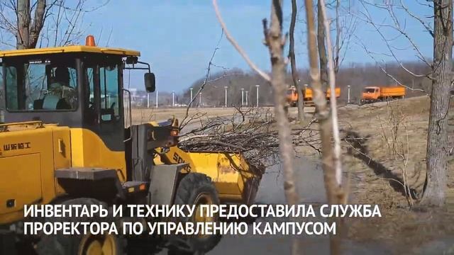 Политехнический институт ДВФУ первым вышел на субботник в кампусе, и теперь передает эстафету другим школам и институтам вуза. В этом году субботник особенно важен — Владивосток до сих пор устраняют последствия ледяного дождя.