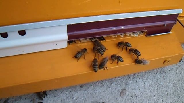 Пчелы вентилируют улей. Bees ventilate a beehive. Die Bienen lüften den Bienenkorb.