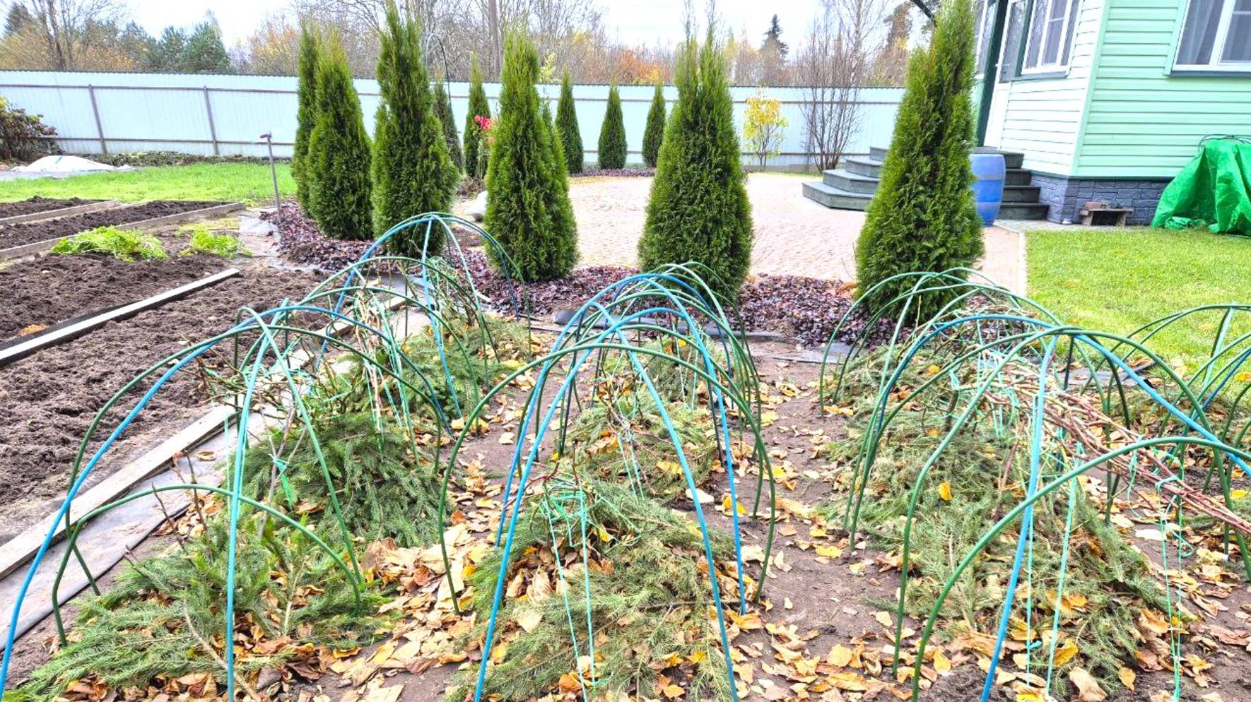 На первом этапе подготовки роз к зиме я удалила все листья, обрезала все соцветия, связала кусты и слегка их пригнула. На втором этапе я внесла под розы осеннее удобрение, пригнула кусты ещё ниже, укрыла опавшими листьями и лапником корневые шейки, установила металлические дуги в виде шатра над каждым кустом. Смотрите об этом в данном ролике Ставьте лайки! Подписывайтесь на канал!