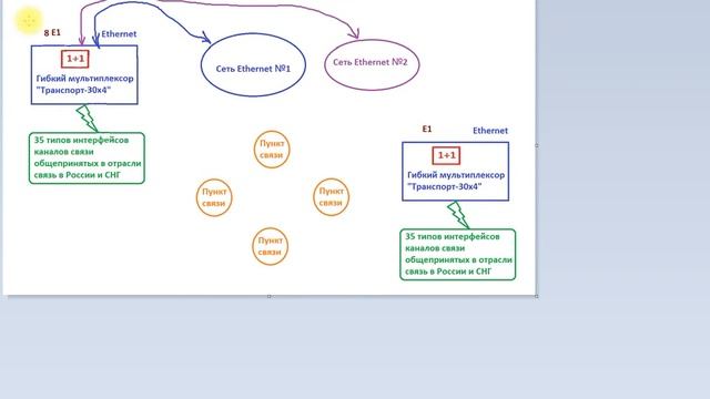 Можно ли используя гибкий мультиплексор «Транспорт-30х4» построить схему организации связи «звезда» для передачи с резервированием общепринятых каналов связи через Ethernet? Как построить схему «звезда» для передачи с резервированием по схеме «1+1» общепринятых каналов связи через Ethernet, Е1? http://www.1rtc.ru/index/multipleksor_voprosy_otvety/0-123 1РТК, Новосибирск. 22 марта 2016г.