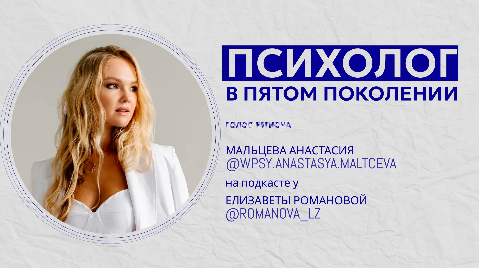 В ДАННОМ ПОДКАСТЕ: Мальцева Анастасия. Анастасия — психолог в пятом поколении. Она родилась и выросла в уютном студенческом Томске, а три года назад переехала из «Сибирских Афин» к Балтийскому морю в Калининград. Оказавшись в новом городе без знакомых и близких, Анастасия начала жизнь с чистого листа и сумела реализовать себя не только профессионально, но и личностно, став женой и мамой. Путь в психологию не был для неё прямым. Первое образование в сфере государственной и муниципальной службы не дало ей внутреннего ощущения самореализации. Осознав, что психологический дар и желание помогать людям — часть её природы, Анастасия решилась на смелый шаг и выбрала новое направление. Этот выбор стал отправной точкой целой цепочки перемен: развод, переезд, новая любовь и создание семьи. ССЫЛКИ: Вы всегда можете написать лично, подписаться и узнать гостя ещё лучше, через его страницы в социальных сетях (ссылки ниже). INSTAGRAM Анастасия: https://www.instagram.com/wpsy.anastasya.maltceva?igsh=NWVxMWVicDI3Njll (Meta — запрещенная на территории РФ организация) TELEGRAM Анастасия: @anastasya_maltceva VK Анастасия: https://m.vk.com/id268328702 TELEGRAM Елизавета Романова: https://t.me/+BtLinEON1so5ZjJi INSTAGRAM Елизавета Романовой: https://www.instagram.com/romanova_lz?igsh=OTNnanR6dTNtMzk0&utm_source=qr (Meta — запрещенная на территории РФ организация) . . . ДИСКЛЕЙМЕР: в данном видео упоминается социальная сеть деятельность организации Meta Platforms Inc, ее продуктов Instagram и Facebook запрещена в Российской Федерации.