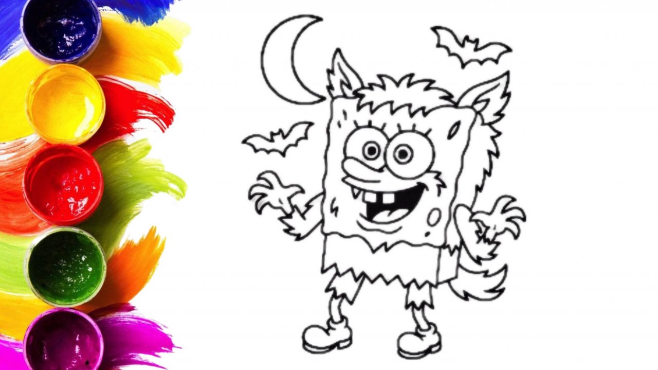 Губка Боб и Хеллоуин раскраска для детей