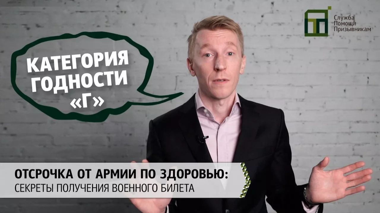 Мы публикуем новое видео «Отсрочка от армии по здоровью: категория годности «Г» для всех подписчиков нашего канала и призывников, кто хочет решить свои проблемы с военкоматом, получить военный билет или защитить свои права. Ниже обозначим самые главные идеи, которые основатель Службы Помощи Призывникам Денис Опрятнов рассказал в видео (https://youtu.be/Q5L_TSvCXTo). Существует две принципиально различных ситуации, в которых призывнику присваивается категория годности «Г». Во-первых, когда отсрочка от армии по здоровью и категория годности «Г» дается с дальнейшей перспективой получения военного билета. Во-вторых, когда категория годности «Г» присваивается в период временных и излечимых заболеваний, травм и симптомов. К первому случаю относится, например, гипертоническая болезнь. В первом призыве при прохождении призывных мероприятий по данному заболеванию призывнику могут присвоить категорию годности «Г». Эта отсрочка от армии по здоровью ему будет предоставлена законно и будет означать лишь то, что военкомат хочет проследить динамику развития заболевания. И если за эти полгода призывник не будет обращаться ко врачам и продолжать вести историю болезни, то его могут призвать в следующем призыве, ссылаясь на то, что ему стало значительно лучше. Что касается временных заболеваний и травм, то к ним могут, например, относиться: переломы и периоды послеоперационной реабилитации, грибок и недостаточность веса, а также многие другие заболевания. Если вам не хватило видео, то у нас на сайте есть целая статья, где подробно рассказано, на каких основаниях призывнику дается отсрочка от армии по здоровью и присваивается категория годности «Г». Статья — https://goo.gl/iT8Grr Сайт — https://goo.gl/uz6YFu Вконтакте — https://vk.com/armyhelp Instagram — https://www.instagram.com/priziv_expert Телефон горячей линии для призывников и родителей 8(800)301-61-60