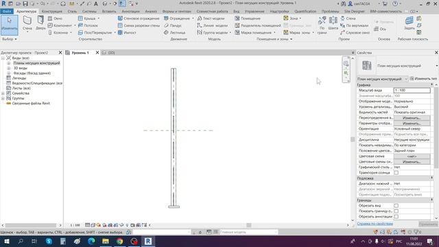 Задание Рабочей плоскости через Опорную плоскость в ревите на балке из стали