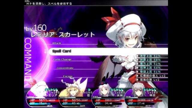 I got mildly unlucky with the 10% chance for Mokou to die and I didn't even know until this attempt (My second, actually, the first was a victory off recording) that Knockout in Three Steps could target slot 2. I definitely could've played the fight out much better than I did, it was very messy. Also, I'm fairly overstatted for this point.