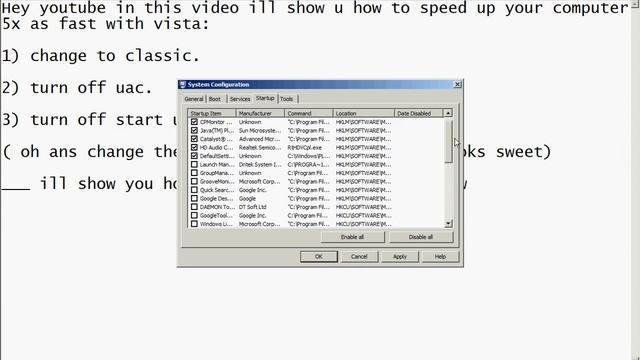 In this video you will be shown how to make windows vist much faster.